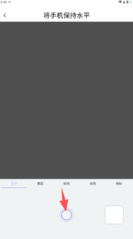 在拍摄界面保持手机水平,对准目标后点击底部的圆形拍照按钮,就能完成识别。