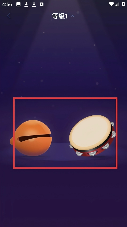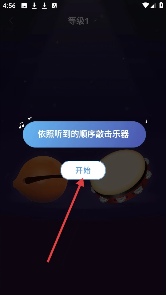 进入【听音模仿】等级1界面,按照听到的顺序敲击乐器。