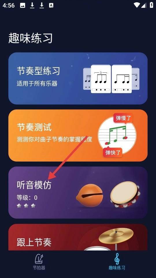在趣味练习中找到【听音模仿】选项并点击进入。