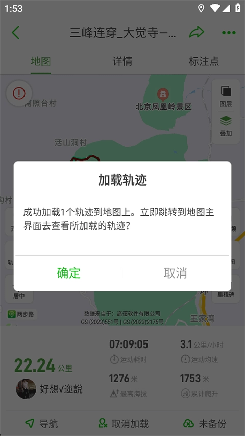 轨迹已成功加载至地图,现在你可以在地图上使用这条轨迹了!