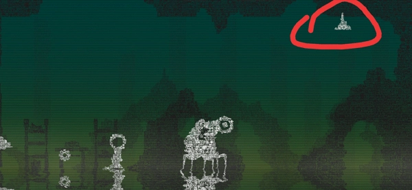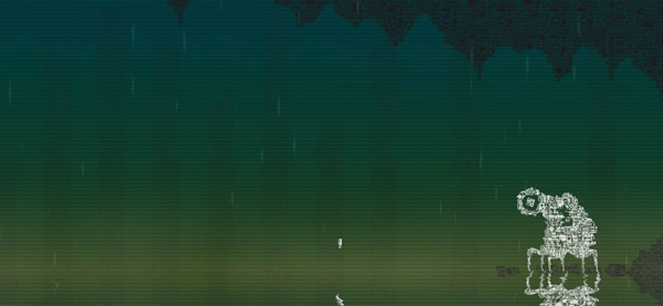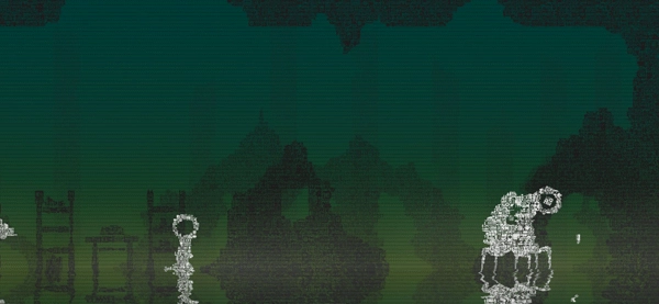 游戏的主要人物均由黑白色方块构成,场景则以湖水与背景中的房屋为主,湖水中还呈现出较为清晰的倒影效果。