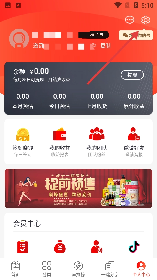 点击右下角【个人中心】,进入个人中心页面。