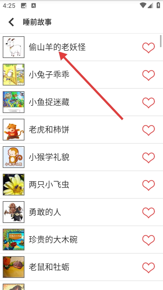 在睡前故事列表页面,挑选《偷山羊的老妖怪》这个故事,就能进入故事阅读页面啦。