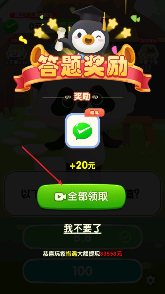 除此之外,答题过程中还会随机出现红包奖励,观看广告即可领取。