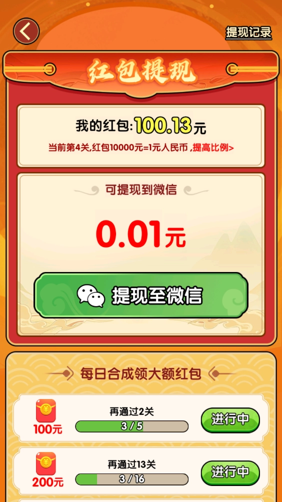 这款游戏确实靠谱,它采用答题闯关的玩法,每通过一关就能获得可观的红包奖励。新手刚进入游戏,只需花几分钟就能轻松闯过前三关,分别拿到0.1元、0.11元、0.13元的红包,经过实际测试,这些奖励都是即时到账的!而且后续闯关积累的奖励还能按一定比例兑换成实际收益呢!