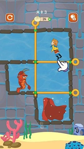 第三关拉开竖向的拉杆后,龙虾和孙悟空都会开始移动。