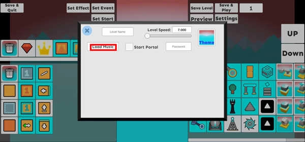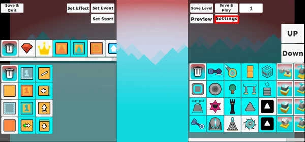 3、当你的关卡铺设完毕之后,点击右上角的settings,会弹出一个设置栏;