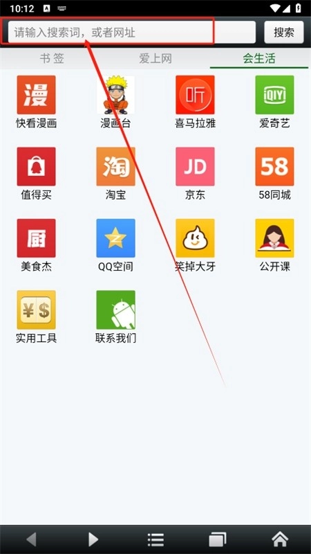 安装软件后,进入首页,点击顶部的搜索框,输入关键词或网址,就能快速找到你想要的内容。
