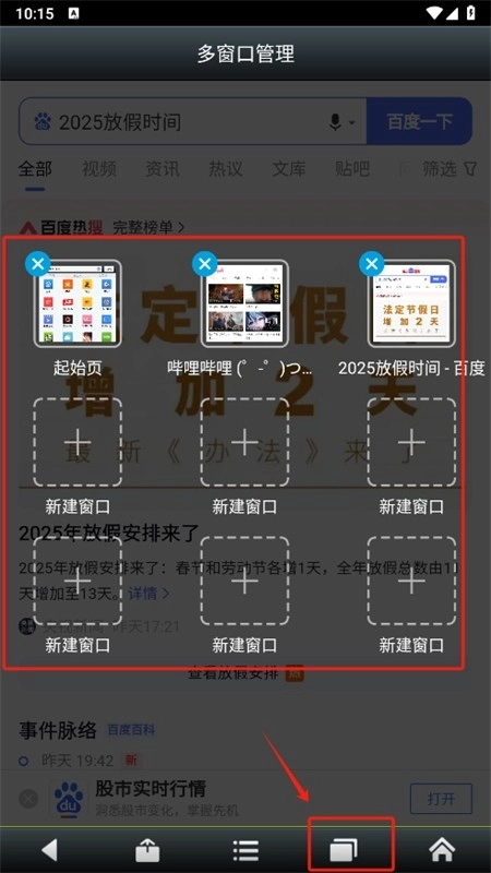 点击下方窗口功能,可以新建多个窗口,浏览更加方便