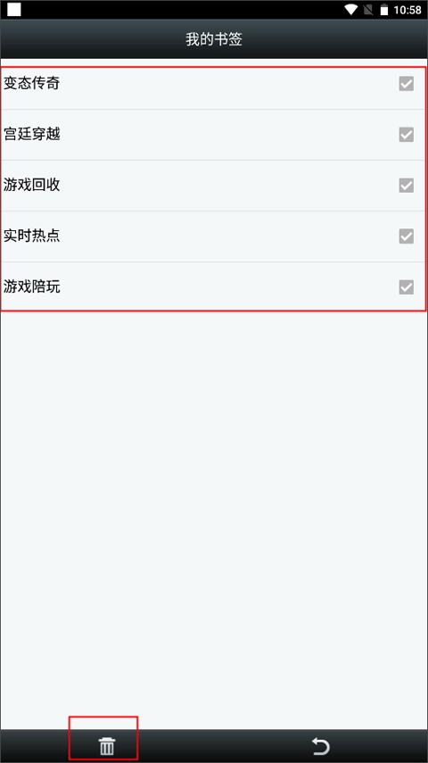 勾选您想删除的书签,最后点击下方的垃圾桶图标即可。