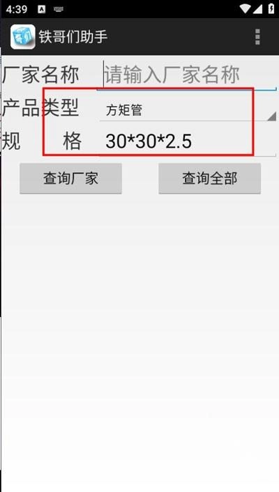 选择要查询的产品类型、规格