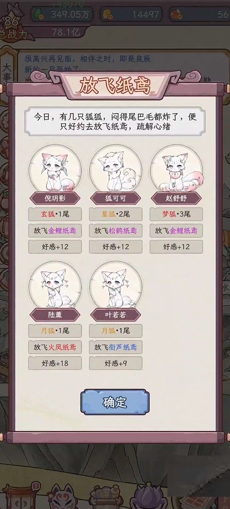 二、在完成各类不同事件后,狐狸会得到对应的属性加成,像灵力、心境、机缘这类属性都包含在内。玩家能够依据每只狐狸的培养目标,有针对性地去参与事件,从而达成每只狐狸的差异化成长。