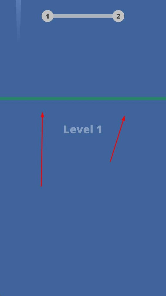界面切换到带有蓝色背景的Level1通关界面,绿色横线是通关的标识,红色箭头则指明了进入下一关或继续冒险的方向。