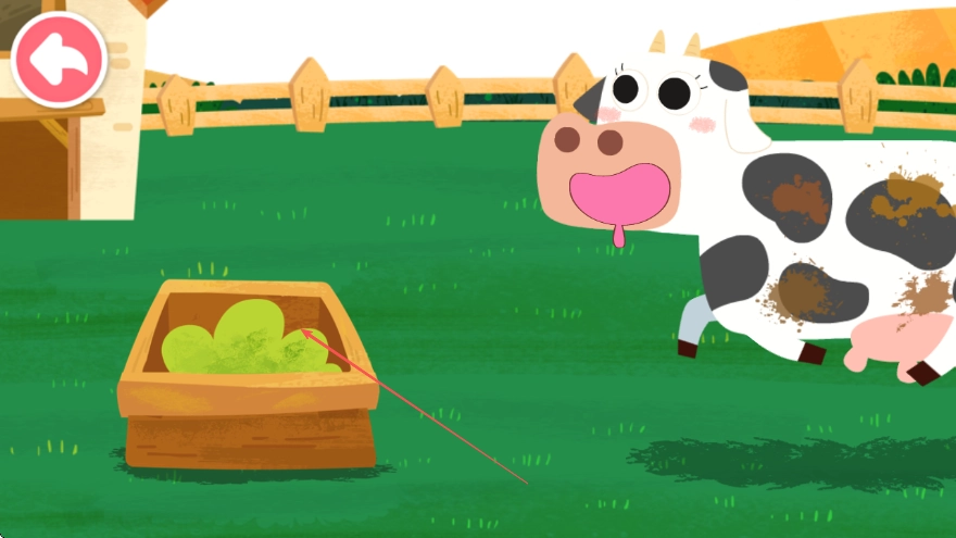 动物互动玩法:点击农场里的小动物,就能弹出喂食、抚摸等互动选项,引导孩子挑选对应的道具——比如给小鸡投喂米粒,观察动物们的反应,在互动过程中认识不同动物的喜好和生活习性。