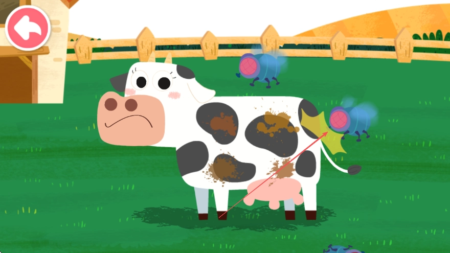 当看到奶牛身上有苍蝇时,点击苍蝇把它们赶走,这样就能让奶牛一直处于舒适的状态。