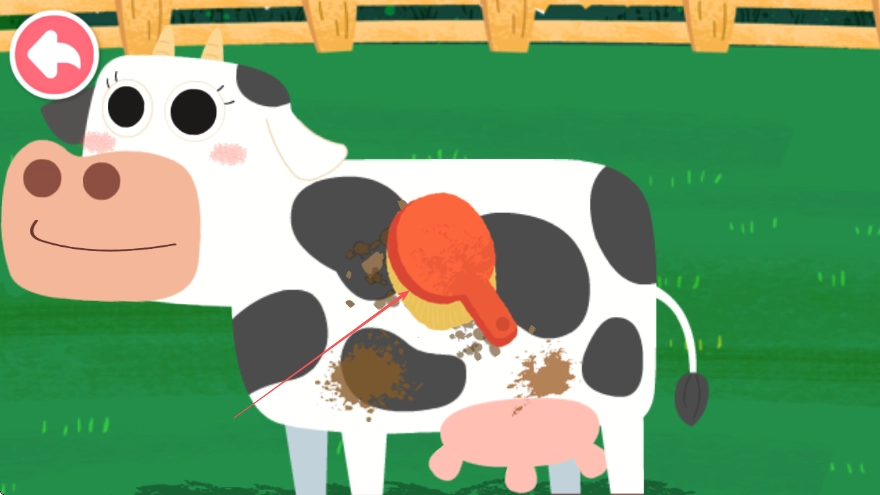 使用刷子道具点击奶牛身上的泥土,为奶牛清洁身体,从而提高奶牛的健康度。