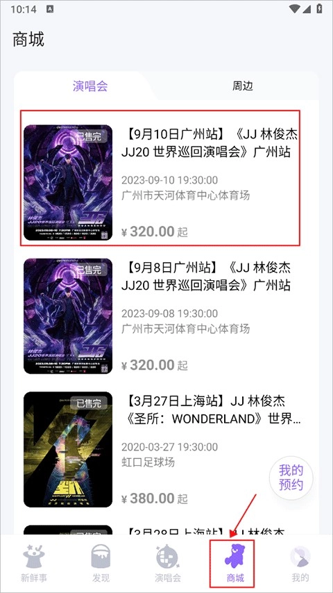在商城界面会展示近期的演唱会场次信息,要是显示“已售完”,就说明该场次的门票已经售罄了,您可以耐心等待下一场次开启售票。