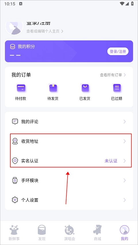 打开后,首先完成收货地址和实名认证