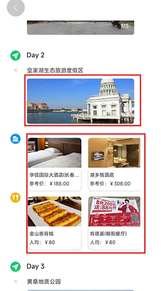 之后,就会出现为您定制的旅游行程和酒店住宿推荐。