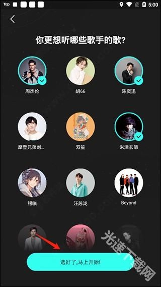 接着还会询问你更想听的歌手,这样就能更好地为你推荐喜欢的歌曲。