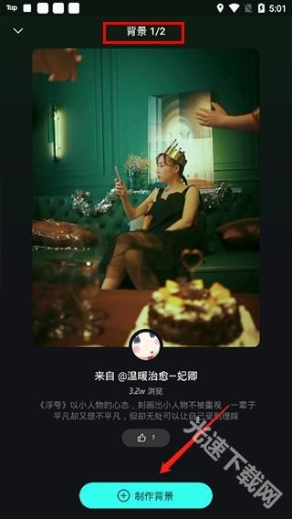 不仅支持自定义制作背景,还能在界面上看到当前该音乐提供了2个视频背景。