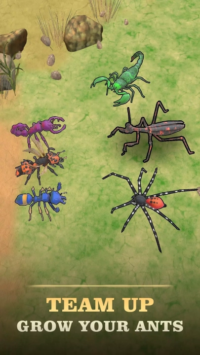 把普通蚂蚁合并起来,就能解锁更厉害的单位。通过合并与进化,打造出史诗级别的蚂蚁战士!当军队等级提高时,你的领袖也会蜕变成强大的新形态,具备更出色的属性和更致命的技能。策略和时机非常关键——只有巧妙安排合并操作,才能在战斗中占据优势。