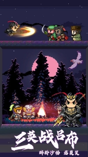 像素艺术精准还原三国风貌,三百余位名将的服饰与兵器设计皆颇为考究,赤壁烽烟、官渡战场等经典战役场景亦得以生动再现。