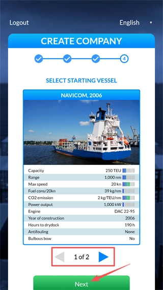 玩家拥有两艘货船,可自由挑选其中一艘开展航运业务,之后点击屏幕下方的“Nex”按钮即可。