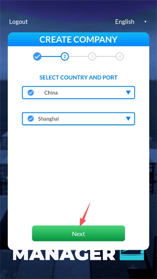 挑选公司的起始港口,接着点击屏幕下方的“Next”。