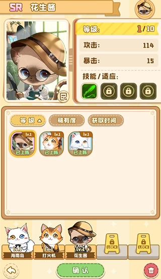 之后可以调整上阵猫咪,挑选战力出色的猫咪出战能加快你的闯关进度哦!调整完毕后点击下方的确认按钮就能进入关卡了。