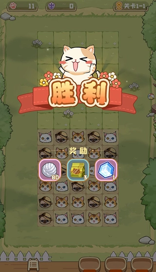 通过闯关探索获得资源,更好养育猫咪。