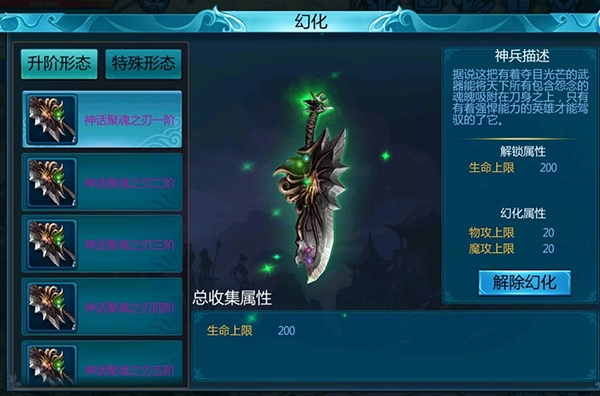 获得神兵后,能把武器幻化成神兵的模样,听说特别帅气。拥有它之后,就是附近一带的俊朗青年。收集不同款式的幻化神兵,还可以得到额外的属性加成。