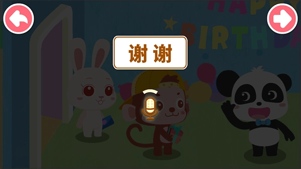 然后就到了该回去的时候啦,这个时候需要和朋友说一声再见,让宝宝跟读即可。这样就结束第一个场景啦,后面还有许多场景可以玩耍,让宝宝多体验一下哦!