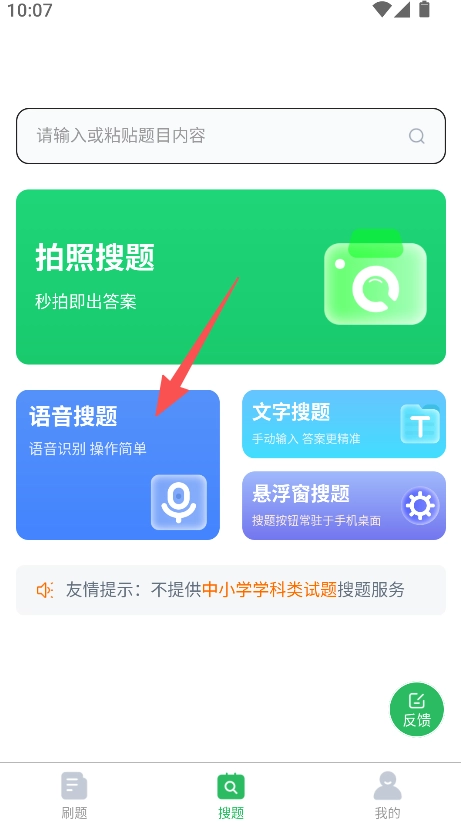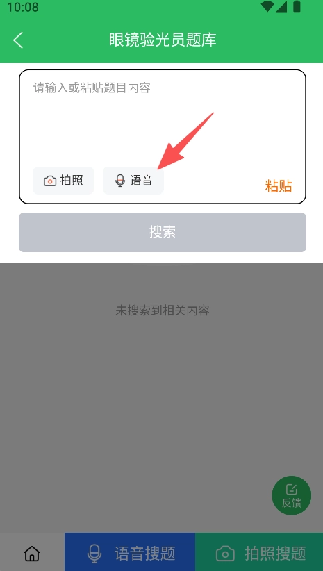 进入搜题板块,选择语音搜题,进行题目检索。