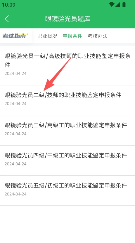 支持考试指南查阅功能,可了解眼镜验光员考试的职业概况、申报条件等相关信息,为备考提供清晰指引,帮助明确备考方向。