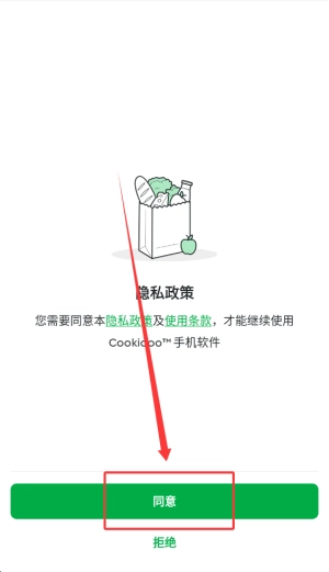 确认服务协议后,您将进入应用主界面,从而开启食谱查询平台的完整使用流程。