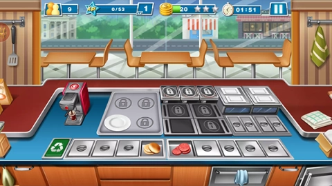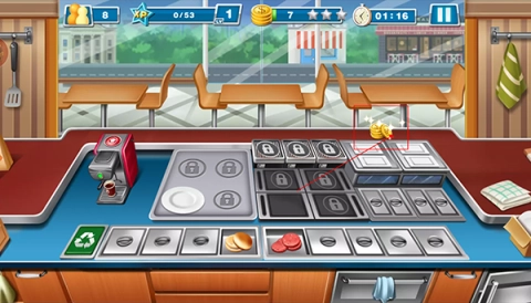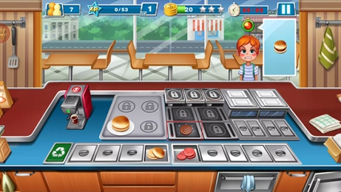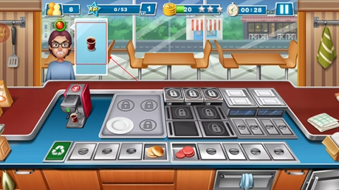 餐馆里会有顾客进来等待点单,顾客所需的食物会显示在对话框中。你的任务就是依据这些需求,快速制作出美食来满足他们的胃。