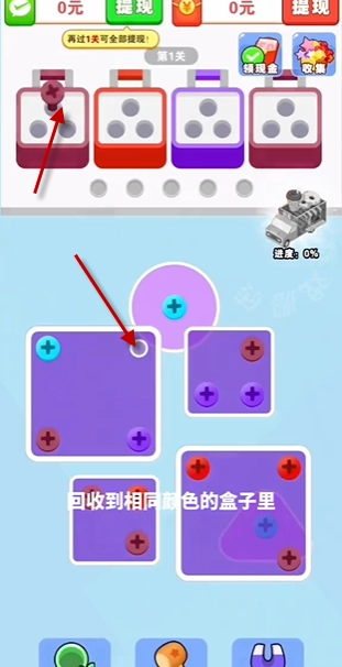 拔下对应的螺丝后,需要放入到颜色相同的盒子当中。