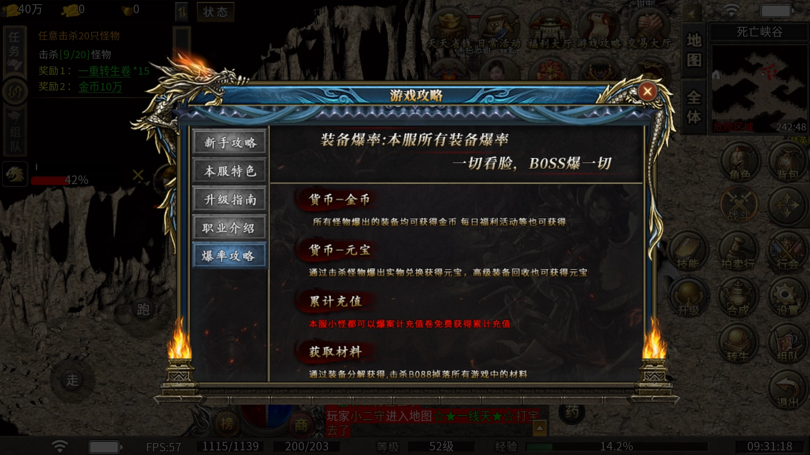 元宝:击杀怪物有概率掉落实物道具,兑换后可获得元宝;回收高级装备同样能获取元宝!