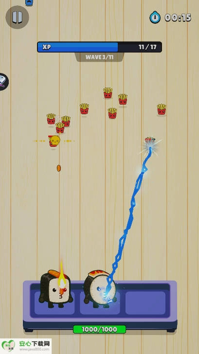 自由策略布局:技能部署打破传统限制,玩家能够自由拖拽技能到战场的任何角落。在狭窄的通道里,可以放置“寿司飞镖”技能,精准地狙击敌人;在开阔的场地上,借助“寿司漩涡”这个范围技能,把敌人卷入其中。结合复杂多变的关卡地形,玩家需要灵活思考,根据敌人的路径和聚集点,合理规划技能的落点,从而大大增加策略的深度。