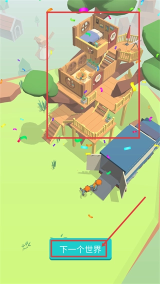 建筑建成后,点击【下一个世界】按钮,就能进入全新场景继续发展,从而拓展更多获取资源的途径。