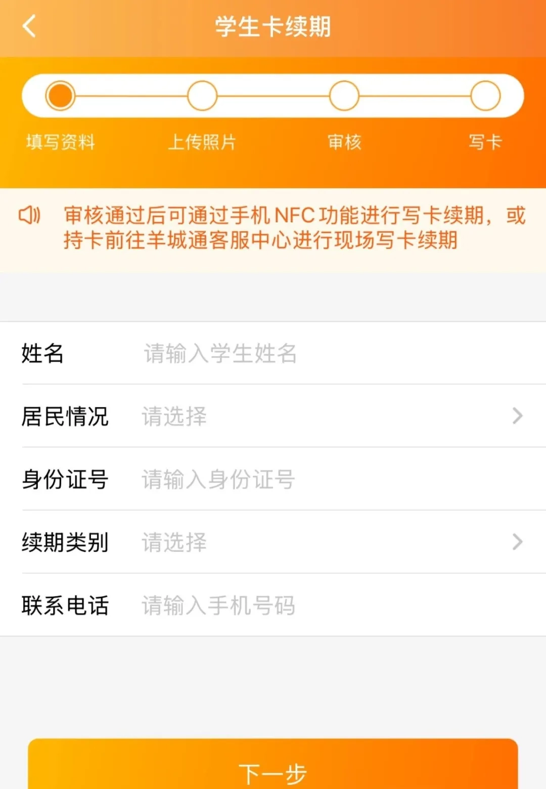 第五步:上传相关证件照片,确认无误后提交申请。待审核通过,可借助手机NFC功能进行写卡续期,也能持卡前往羊城通客服中心办理现场写卡续期。