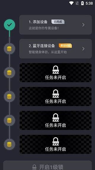 完成这些任务后才能够开启蓝牙连接功能,其中第一个任务就是添加划船机等设备