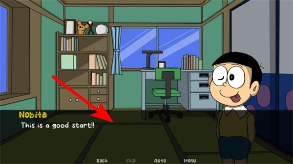 进入游戏界面后,点击剧情互动区域开启故事流程,这是进入游戏的关键操作,只有这样才能推进哆啦A梦的剧情环节。