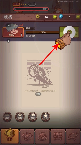 进入武将界面后,点击升级按钮可提升武将属性(如点击伤害属性),以此增强角色的基础战斗能力,为后续关卡的战斗积累优势。