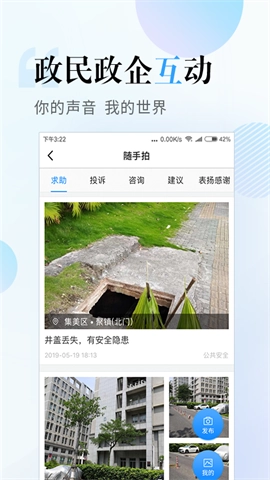 这里几乎覆盖了交通、居住证、社保、公积金等各类事务,再也不用出门来回跑了。而且首页会及时更新厦门的最新政策,我一打开就能马上获取到最新信息。最让我满意的是,市民在广场上拍摄的照片,不少是关于公共设施损坏的,上传之后相关部门会快速处理,这一点确实能让人感受到开发者的用心。