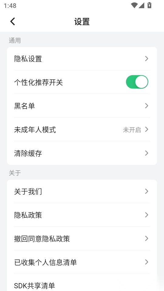 用户可以通过滑动操作,将“个性化推荐开关”关闭。