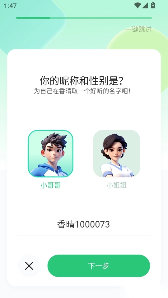 然后进入基础信息填写界面时,可直接点击右上角的“一键跳过”按钮来快速进入目标界面。