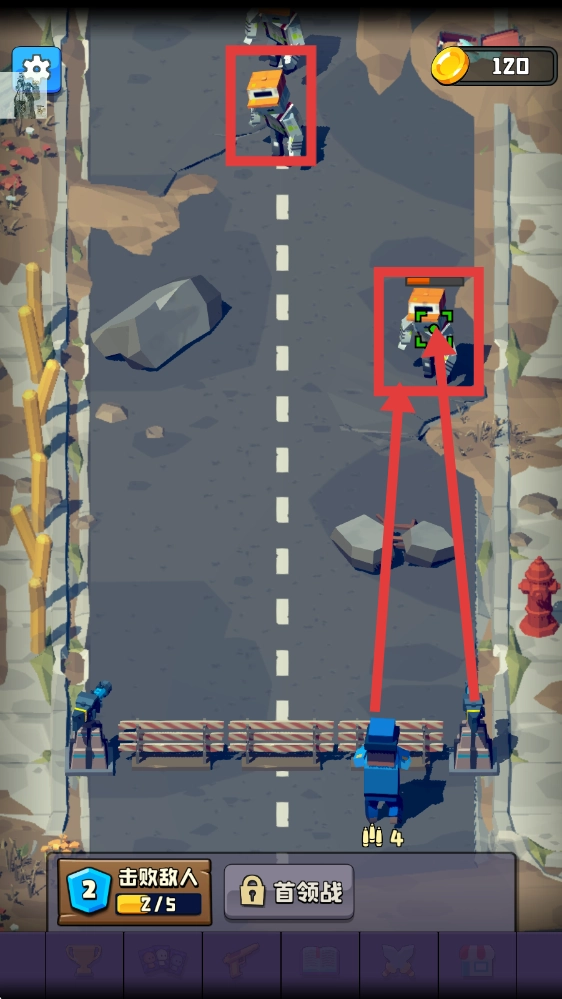 请留意【击败敌人-2/5】的进度情况,优先对行进途中的敌人发起攻击,这样既能推进进度,又能获得【120-金币】的奖励。