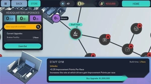 我们先来介绍赛车系统。在这款游戏里,想要升级车队的车辆,既可以通过制造模块,也能选择购买模块。车辆的水平高低会对比赛表现产生关键影响,要是开着一辆评分比较靠后的车,想在比赛中取得靠前的名次可不容易。